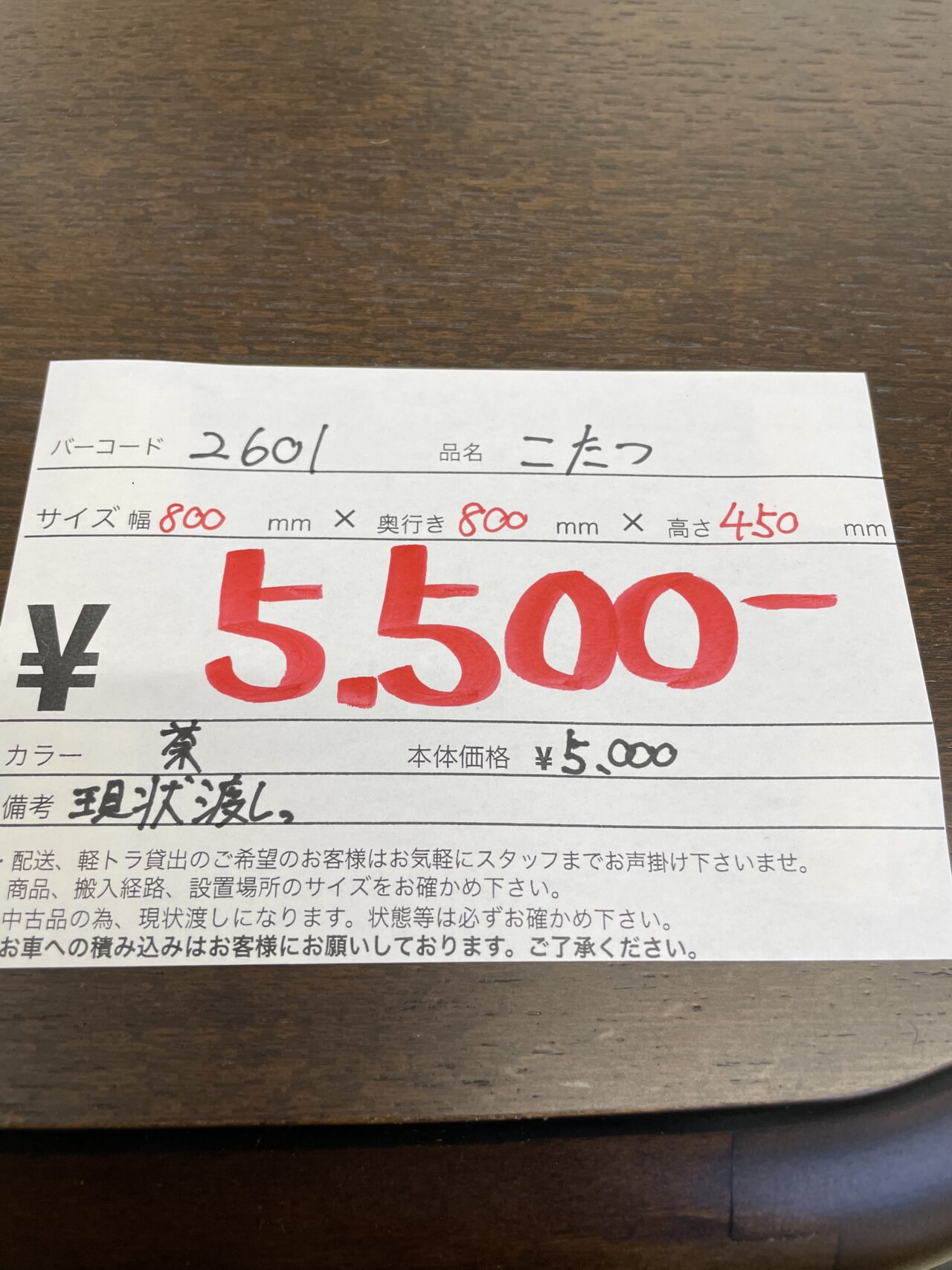 こたつ 茶 サイズ幅800mm×奥行き800mm×高さ450mm 現状渡しとなります。 価格¥5500(税込)