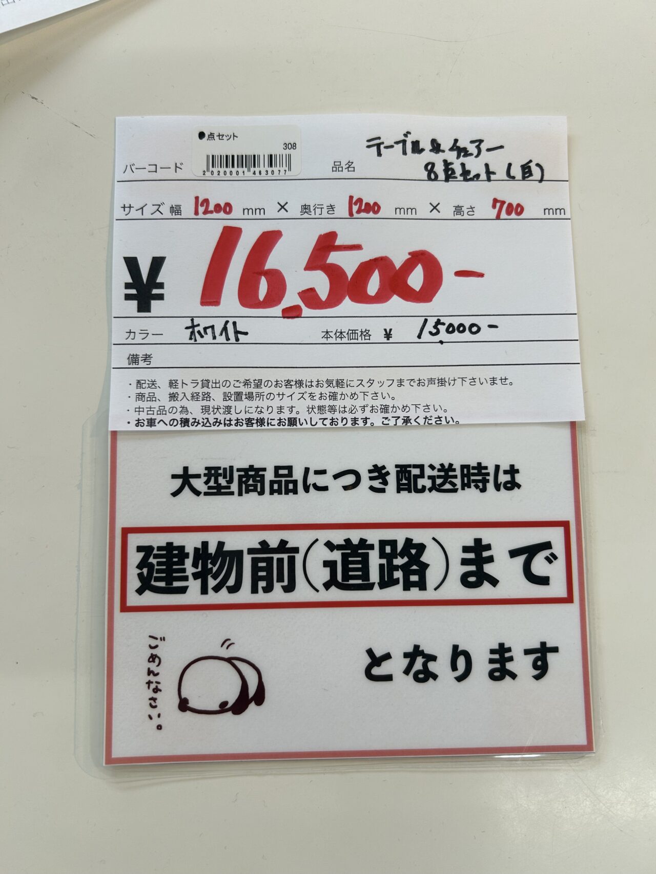 テーブル&チェアー8点セット 白 サイズ幅1200mm×奥行1200mm×高さ700mm ※建物前までの配送限定となります。 価格¥16500(税込)
