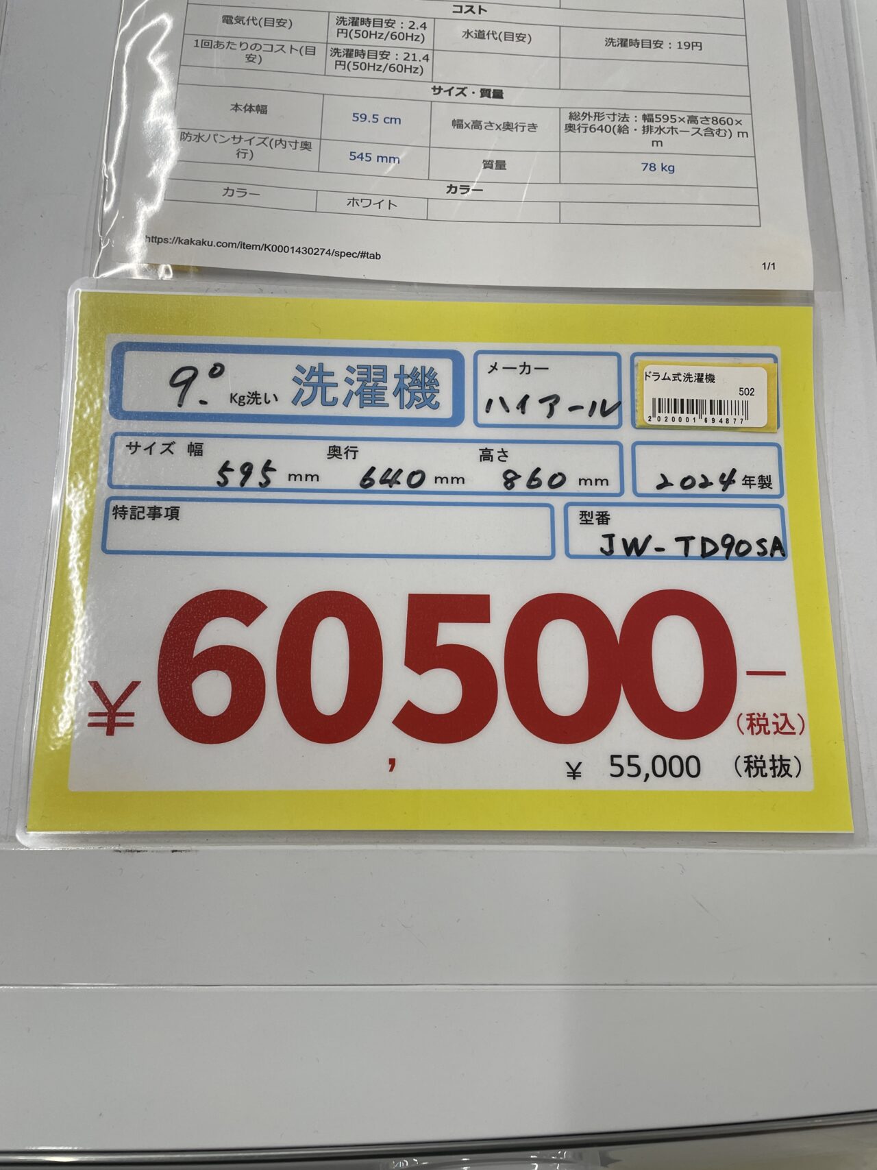 ハイアール ドラム式洗濯機 2024年度 JW-TD90SA 9.0㎏ サイズ感595mm×奥行640mm×高さ860mm 安心6か月保証付き!!! (※ベランダ置き、野外置き、車関係での業務使用、 ペット関連での使用、美容室等での業務使用の場合は保証が付きません。) 建物前までの配送限定となります。