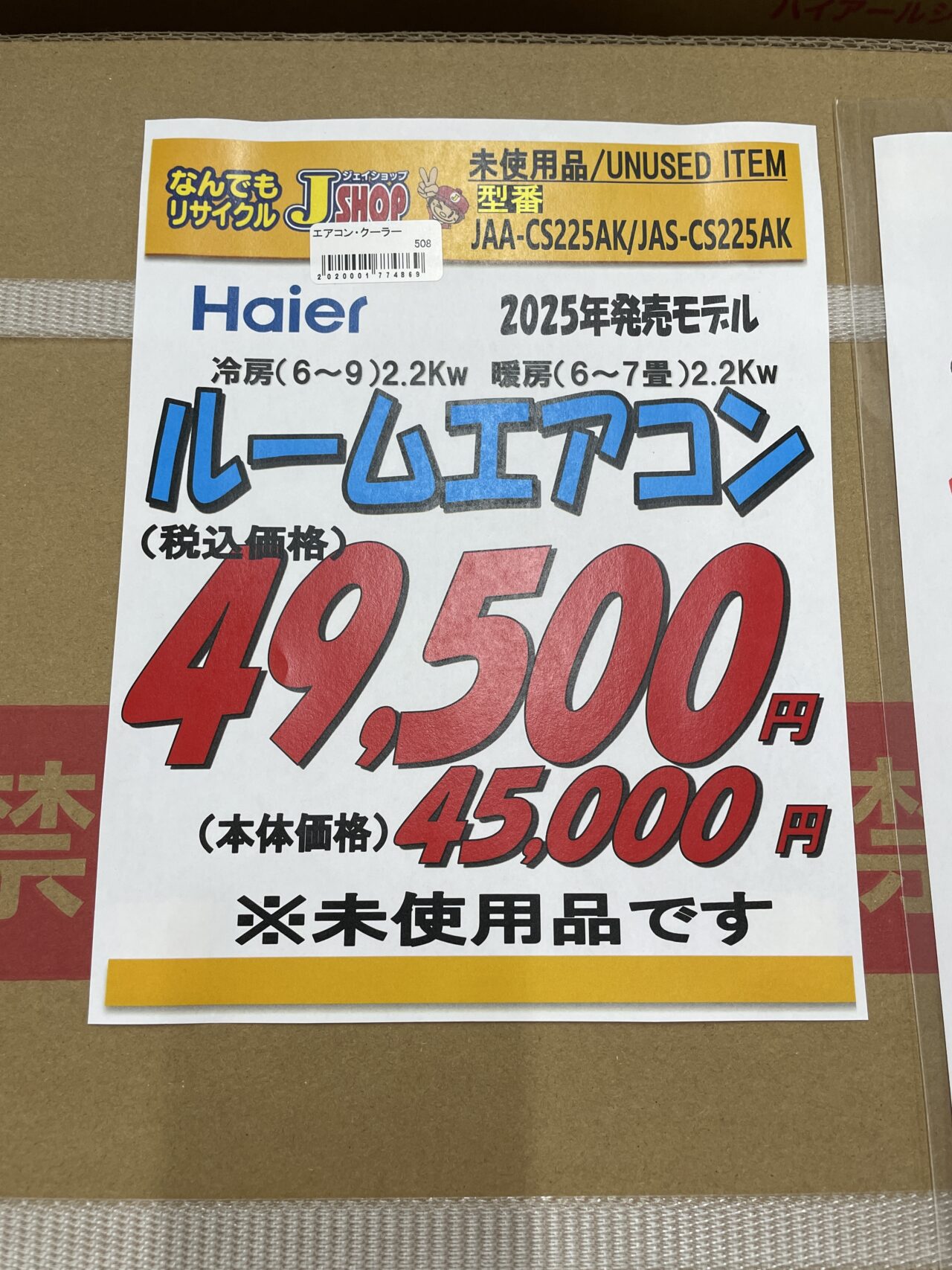 ハイアール ルームエアコン JAA-CS255AK 2025年発売モデル 冷房(6~9)2.2Kw 暖房(6~7畳)2.2Kw ※販売後はノークレーム・ノーリターンとなりますので何卒、ご了承の程よろしくお願いします。 価格¥49500(税込)