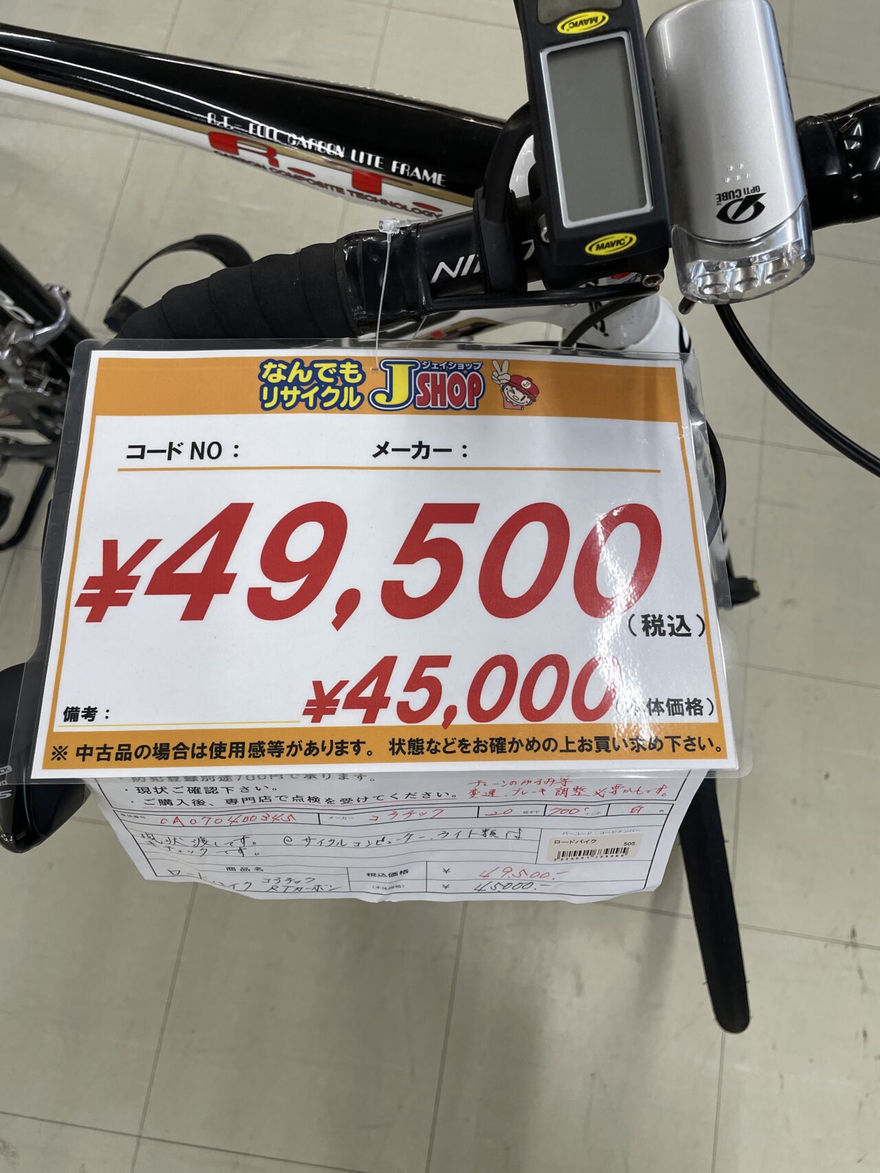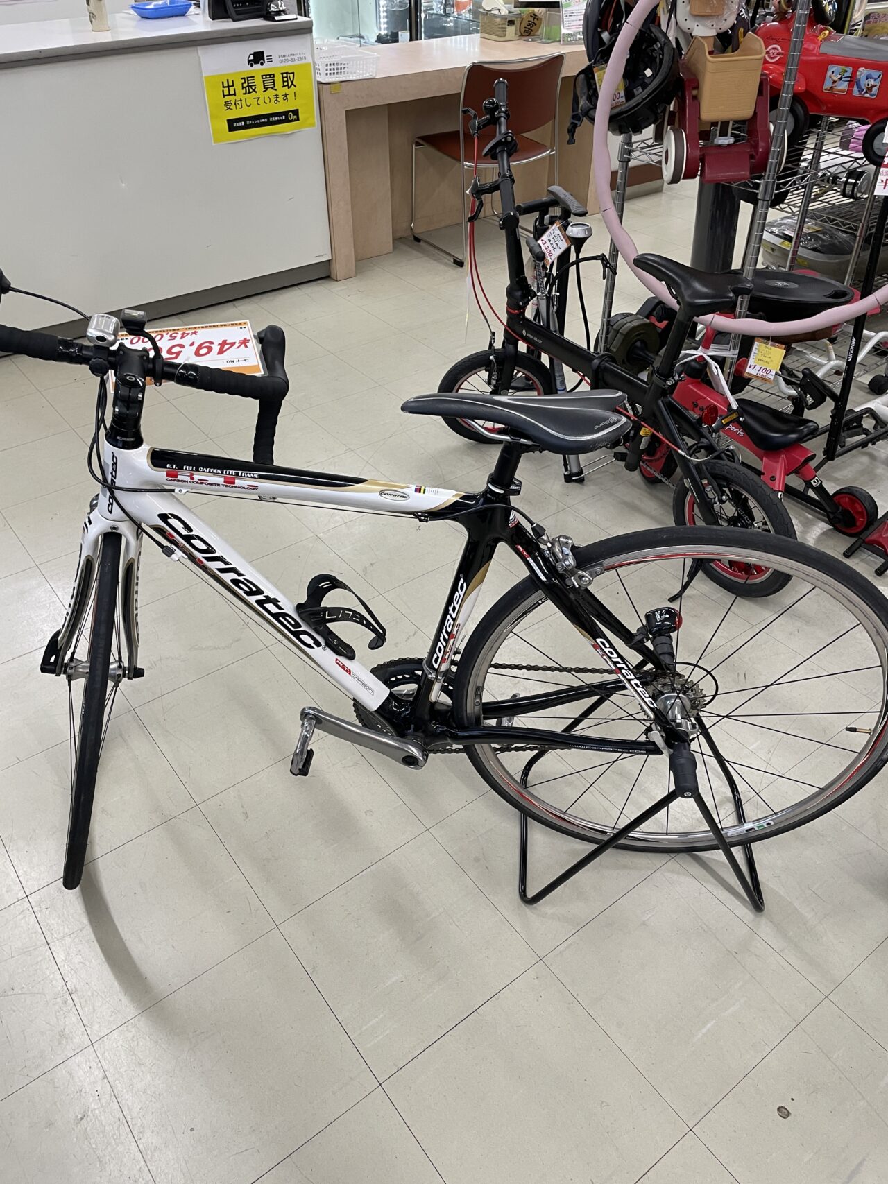 ロードバイク コラテック RTカーボン 20段ギヤ 700インチ 白色 現状渡しです サイクルコンピューター、ライト類は未チェックです。 ※ご購入後、専門店で点検を受けてください。 (チェーンのゆるみ、ブレーキ調整等) 価格¥49500