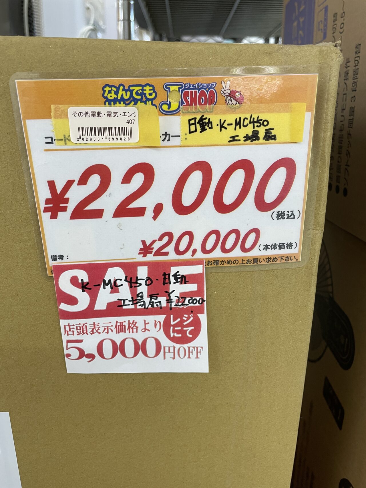日動 工場扇 K-MC450 価格¥22000(税込)→¥17000
