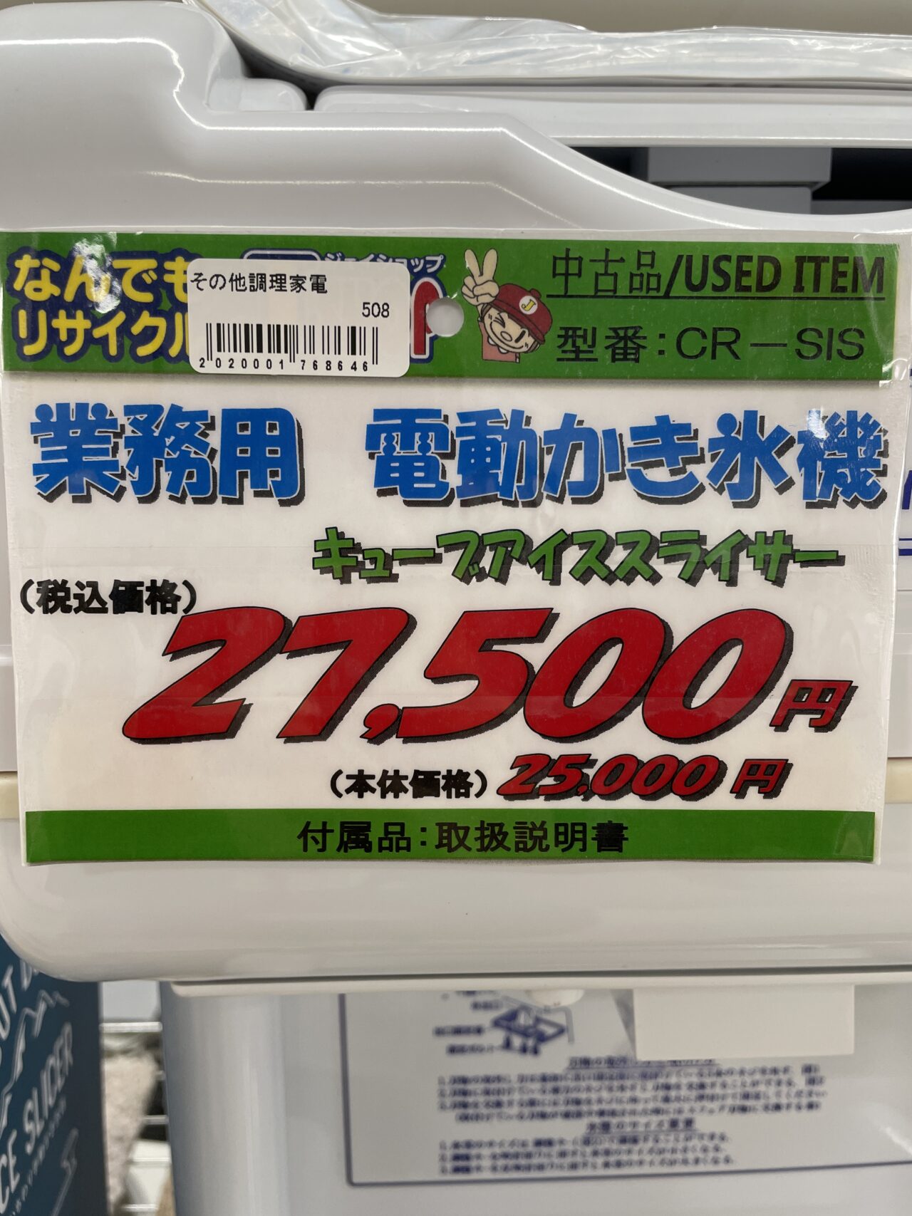 業務用 電動かき氷機 CR-SIS 中古品 付属品:取り扱い説明書 価格¥27500(税込)