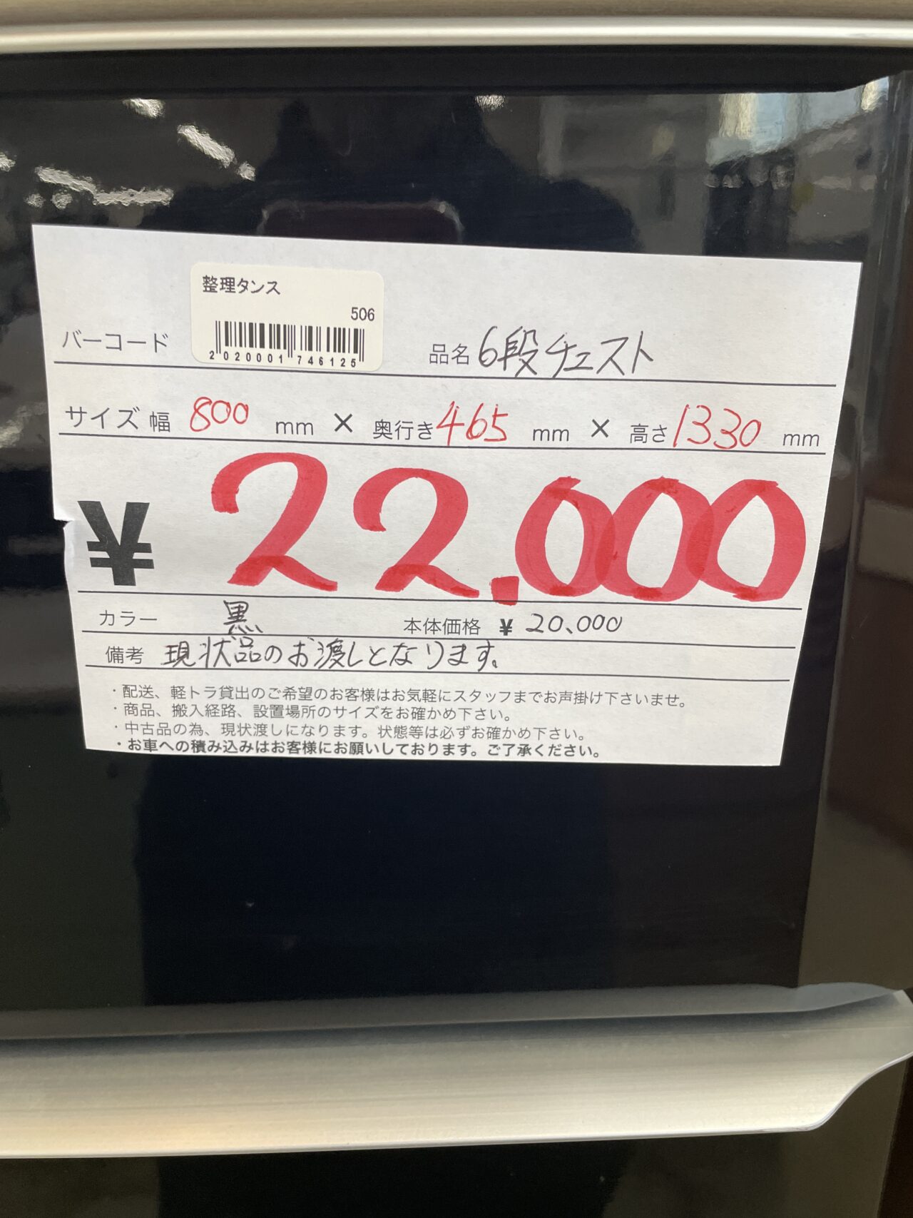 6段チェスト 整理タンス 黒 サイズ幅800mm×奥行き465mm×高さ1330mm ※現状品のお渡しとなります。 価格¥22000