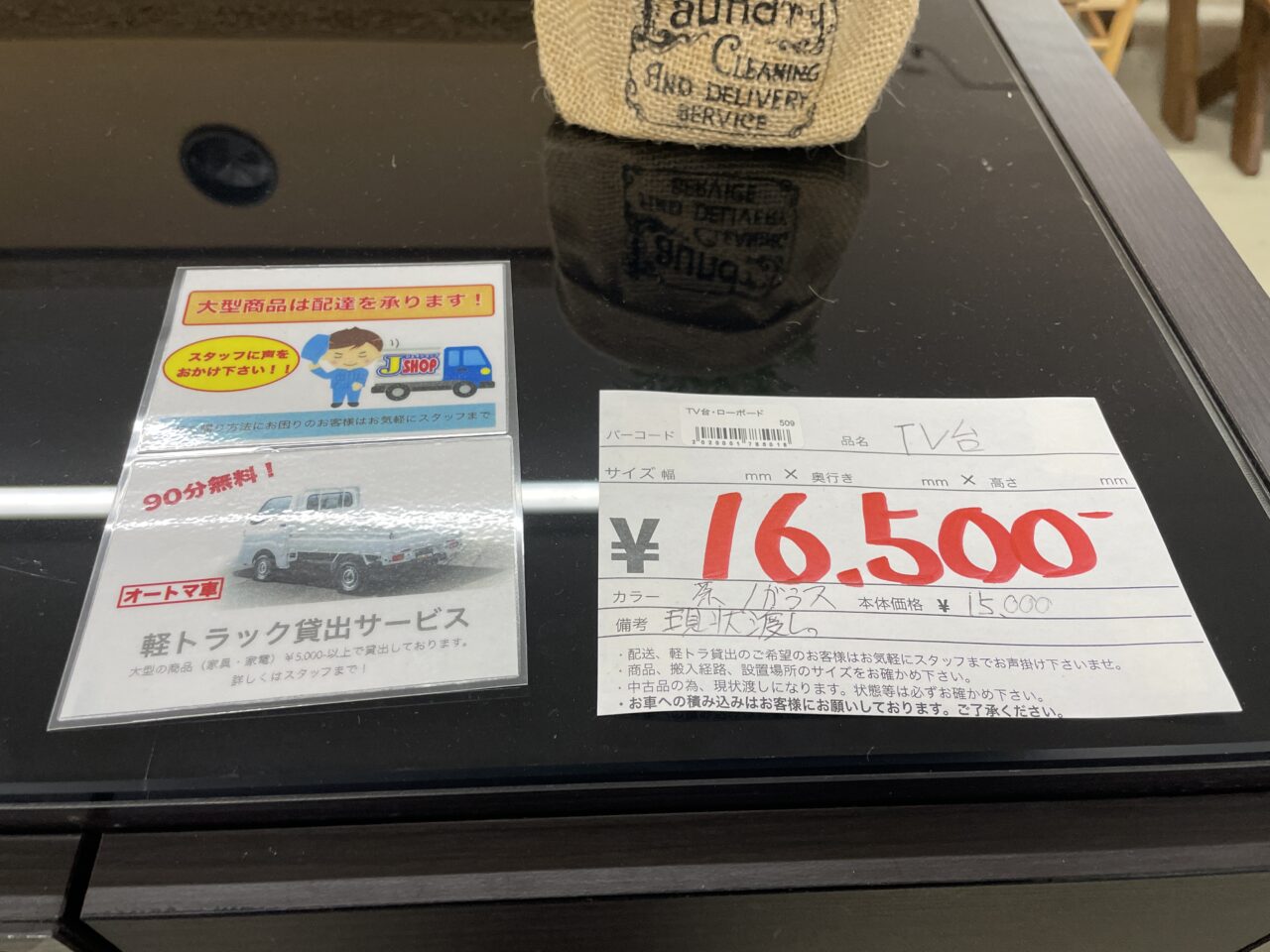 TV台 茶/ガラス ※現状渡しとなります。 価格¥16500(税込)