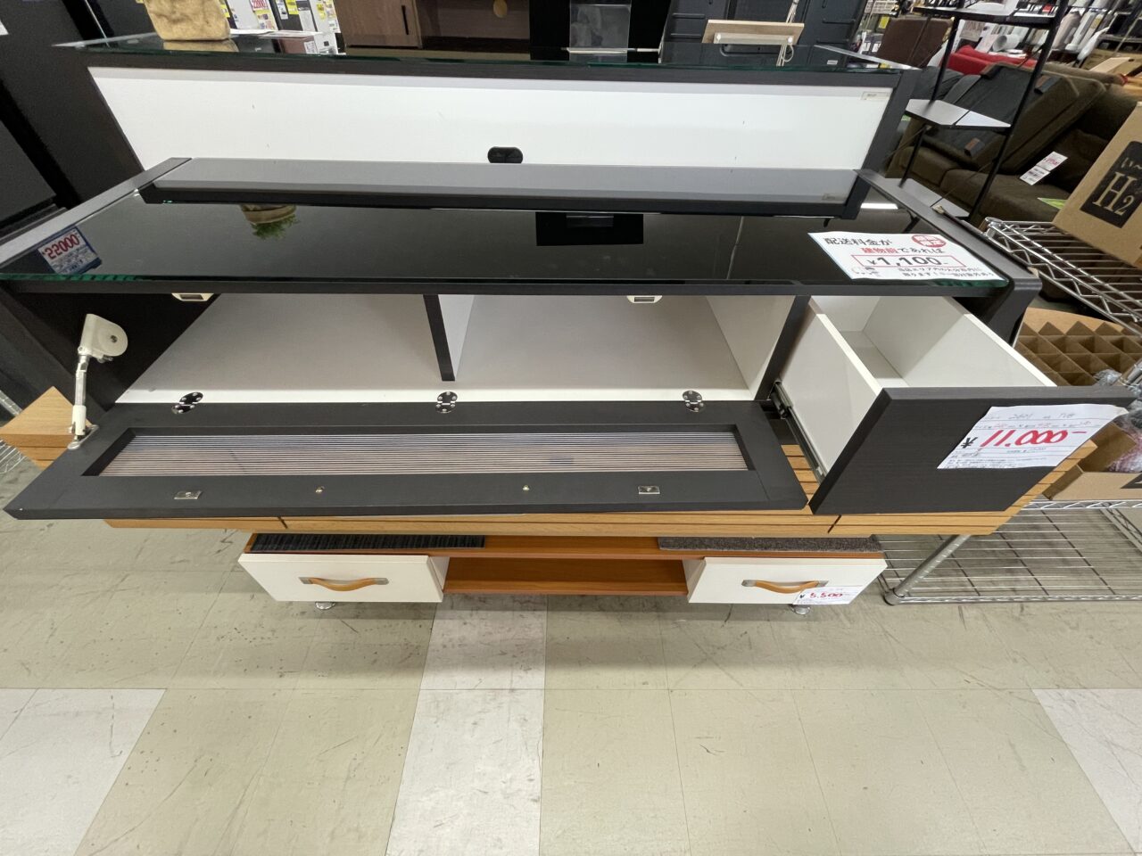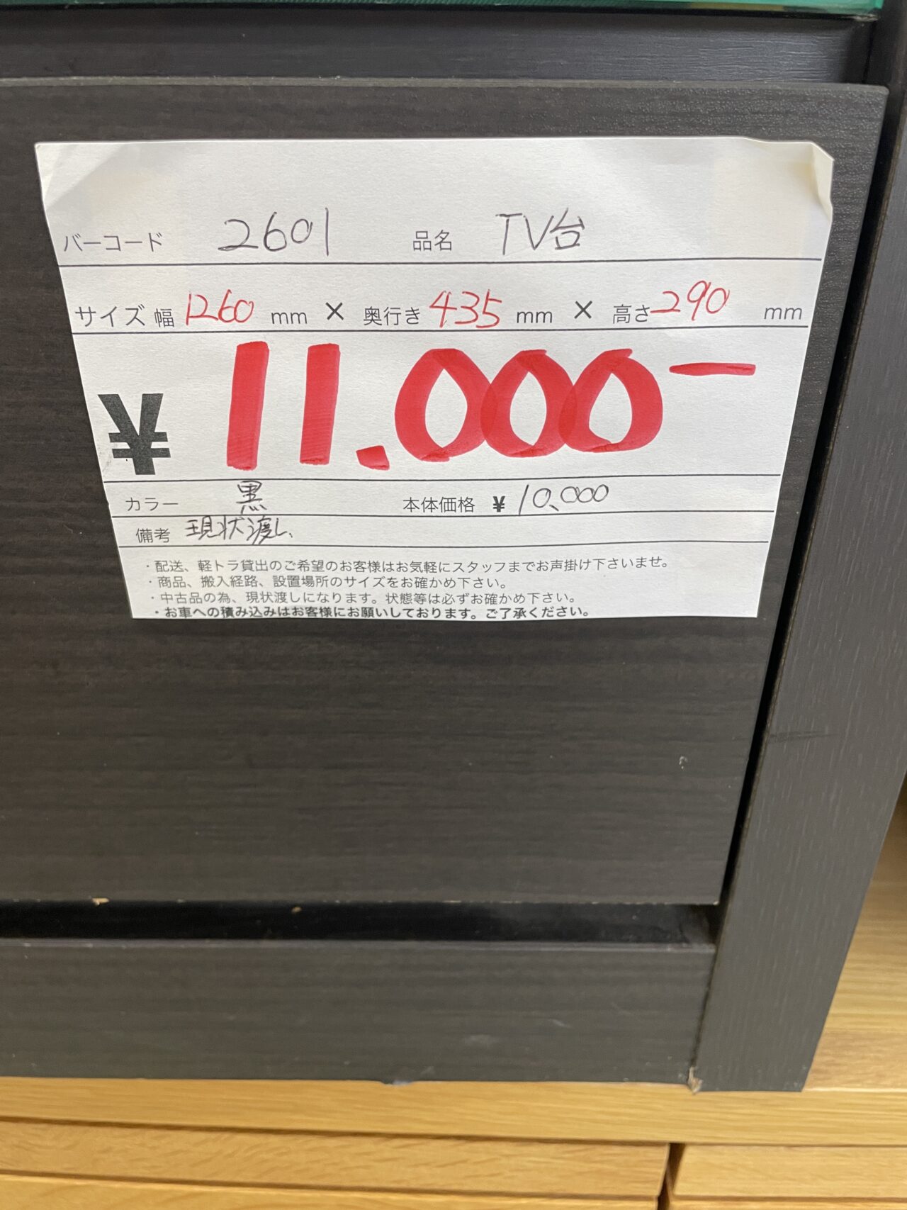 TV台 黒 サイズ幅1260mm×奥行き435mm×高さ290mm ※現状渡しとなります。 価格¥11000(税込)