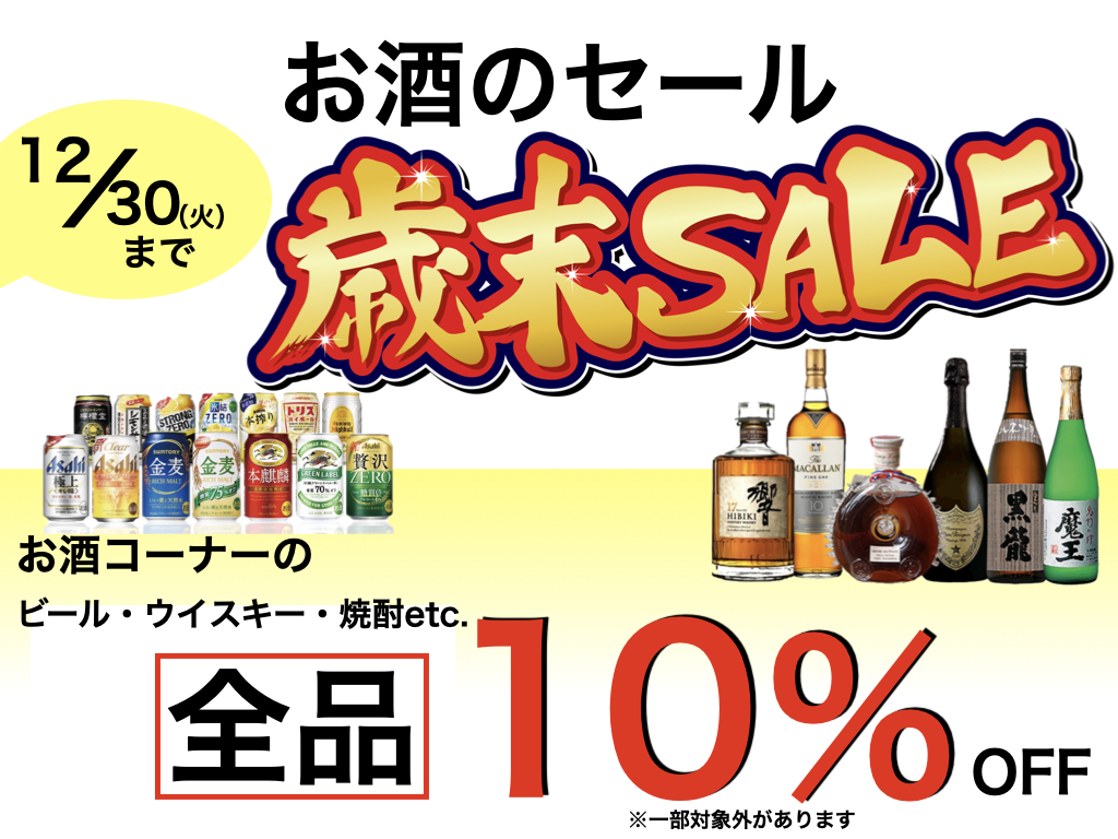 🔥【12月20日(土)〜 歳末セール最終追加!】 お酒コーナー&衣料品コーナーがさらにお得に!